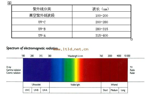 紫外線是一種肉眼看不見的光波,存在于光譜紫射線端的外側,故稱紫外線。紫外線系來自太陽輻射電磁波之一,通常按照波長把紫外線分為四類如下: